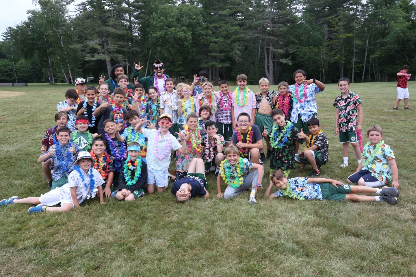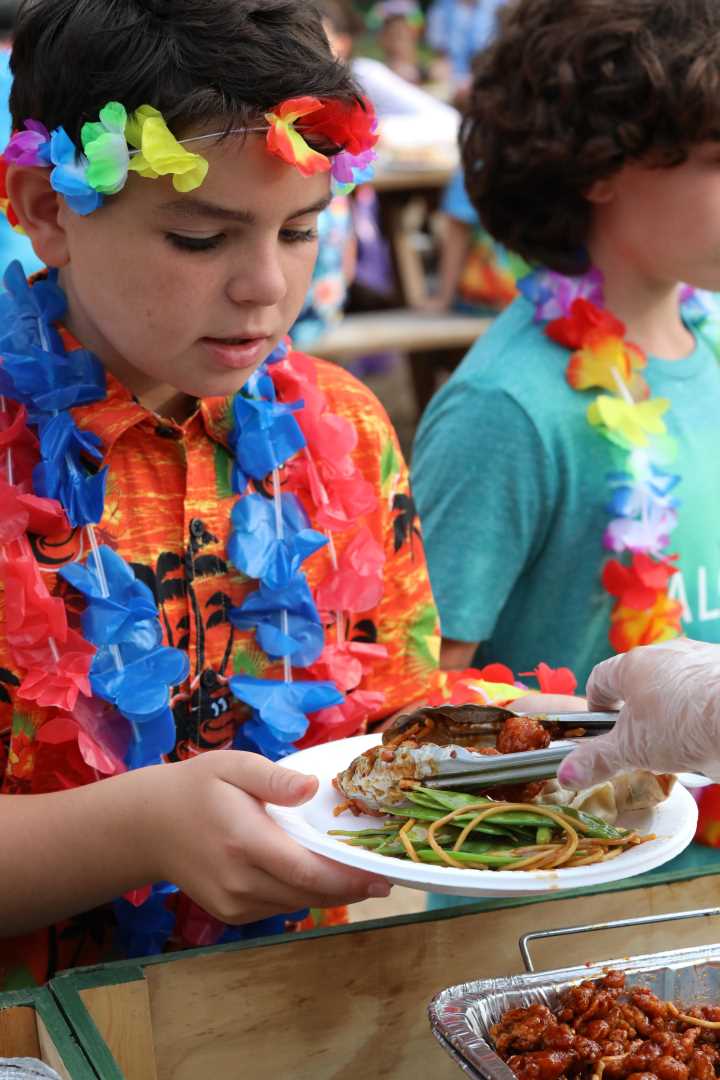 It was a very festive evening at Raquette Lake Boys Camp for Luau. The boys came to lineup in all their special attire from hawaiian shirts to hula skirts, and then we also outfitted them with flower leis! They enjoyed a delicious dinner on the beach with authentic hawaiian cuisine. After dinner it was time to dance, play games, and enjoy the beautiful lake.