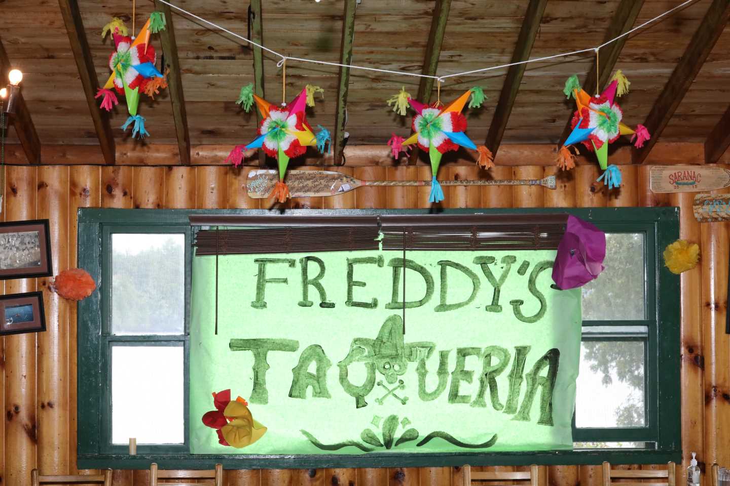 It was a festive night on Raquette Lake Boys Camp as the boys came down to Freddy’s Taqueria adorned with Pinatas for so much fun! Chicken tinga tacos, pickled vegetables, quesadillas, nachos, and churros galore! The boys enjoyed an authentic meal with authentic music. After dinner… a conga line, singing, and dancing in the dining hall!