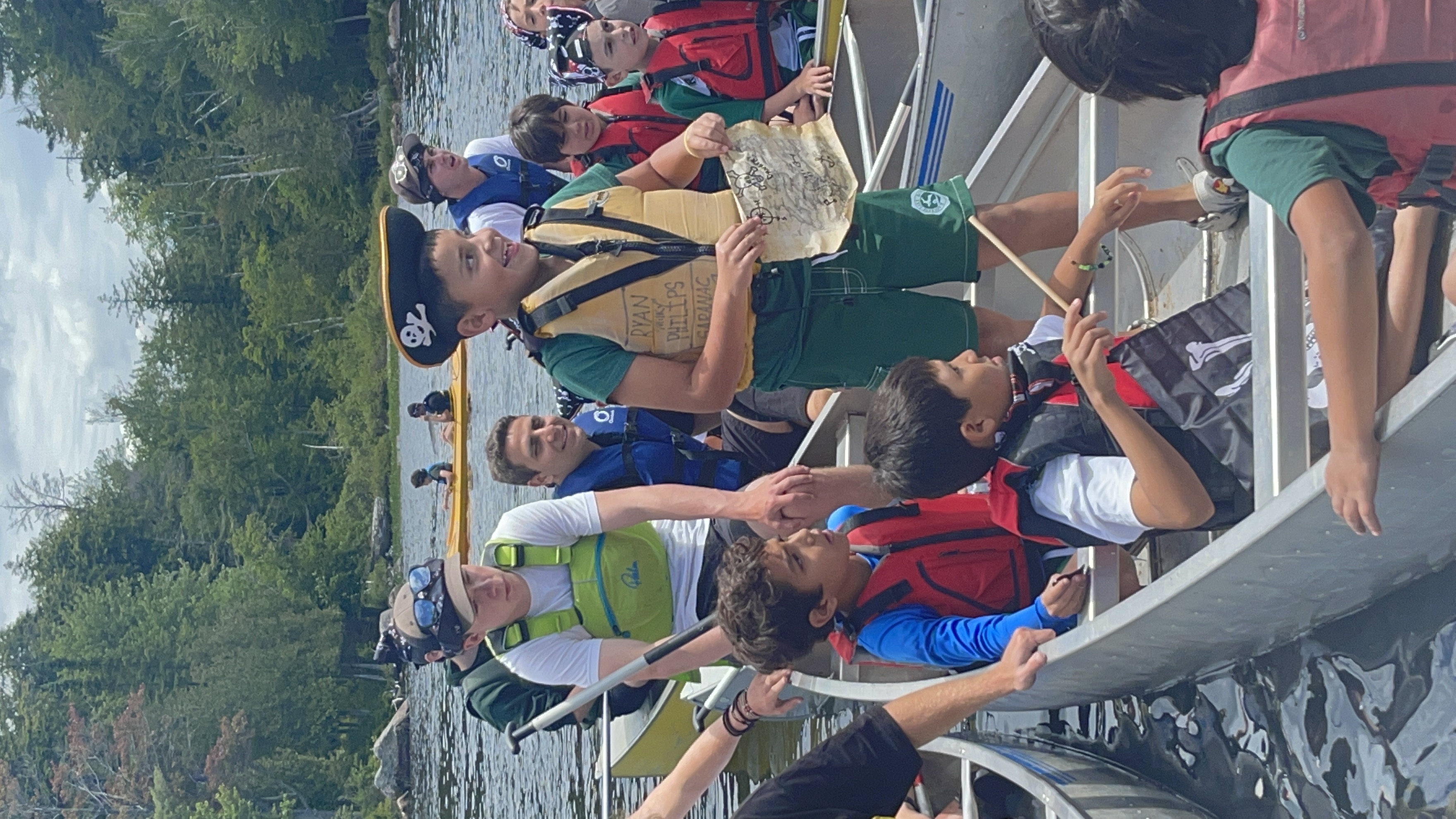 Ahoy! The freshman boys explored the lake on their pirate adventure. They canoed around to different islands looking for a treasure map and gold. The map led them to the girls camp where they raided the dining hall and enjoyed a shipwreck picnic.