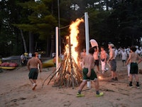 The morning of day 2 was spent out on the fields for the boys participating in activities like gaga, baseball, flag football, hoops, soccer, and more. The main event of Day 2 was the ever-popular Rope Burn after dinner. For the event the teams were comprised of 25 members from each team, 5 from each age group and 5 counselors per team. They work together to collect firewood from the forest, and then build a large fire in order to burn a rope that sits 10 feet off the ground. Both teams constructed tall, hot fires, which made for a thrilling finish. The White Team fire burned through the rope first, taking the victory and the 50 points.