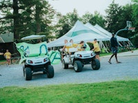 The Aides challenged the former campers to a basketball game during rest period that led to an animated fake-break with all of the campers watching. Some of the head staff performed their own fake break at dinner line-up, too.