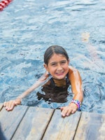 After dance practice, lunch, and rest hour, the girls headed to their team meetings prior to the Upper Camp Swim Meet and activities for Lower Camp. For both the Upper and Lower camp swim meets, each team puts campers into heats to swim different strokes along with a medley relay. When the Lower Camp started their swim meet after snack, Upper Camp headed to their last bunk event of team week.