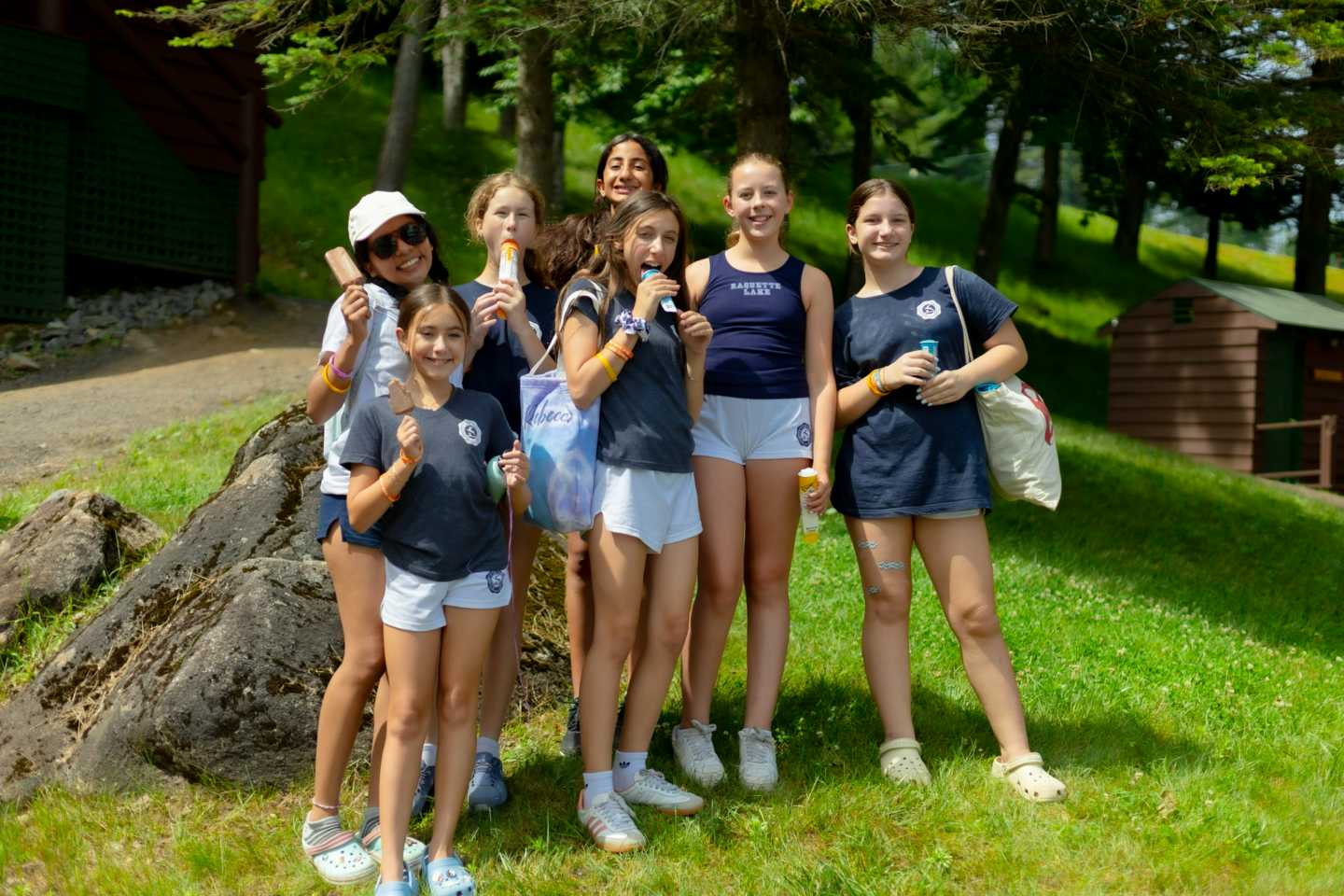 At Raquette’s arts and crafts area, creativity is blooming with a variety of activities. The most popular projects have been making friendship bracelets, with campers intricately weaving beads and colorful threads. The introduction of decorated mirror crafting using air-dry clay has sparked a wave of enthusiasm, as participants shape and mold their unique designs. In the swimming area, we are proud to announce that all bunks have successfully passed the blue cap test. For those who didn’t pass initially, they have been working in small groups with lifeguards to improve their skills and stamina, aiming to pass the test soon. Those who have passed the blue cap test have engaged in interactive dock safety talks to ensure they understand how to stay safe near water. They’ve also been enjoying the new aqua-glide inflatables, swimming laps, and playing at the beach area, with instructional swim set to start in the next couple of days.