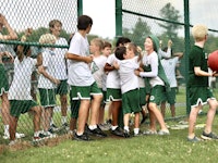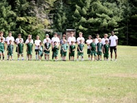 As the teams gathered in the morning for song and cheer practice, the sun was out for our annual One Inning Softball game which kicked off the competition yesterday after lunch. This is a split point event with 35 points that go to the winner plus runs scored and 15 points to the other team plus runs scored. Green team was victorious 3 runs to 1, taking home 38 points and white taking home 16.