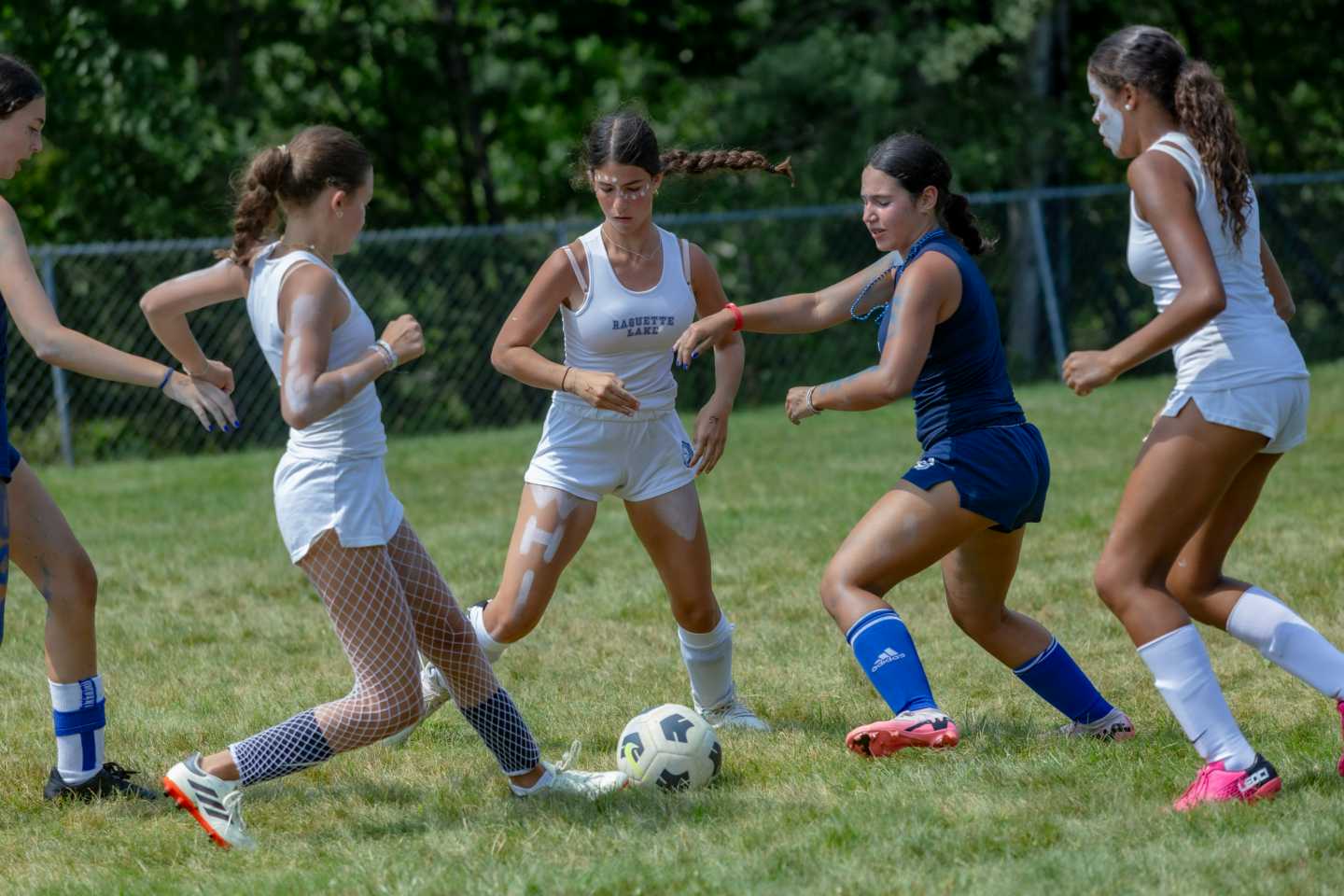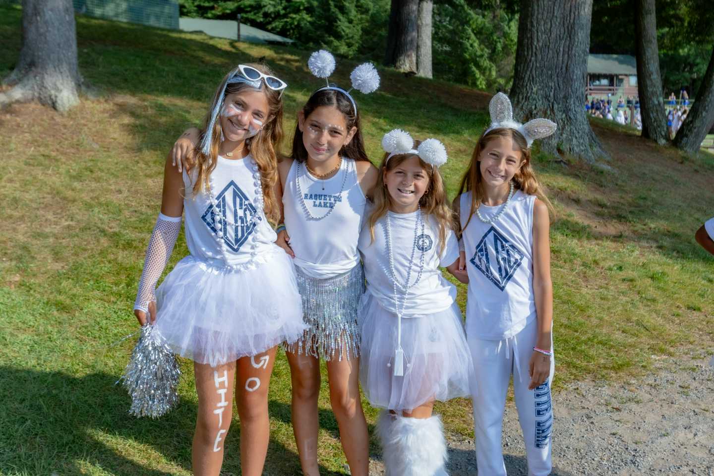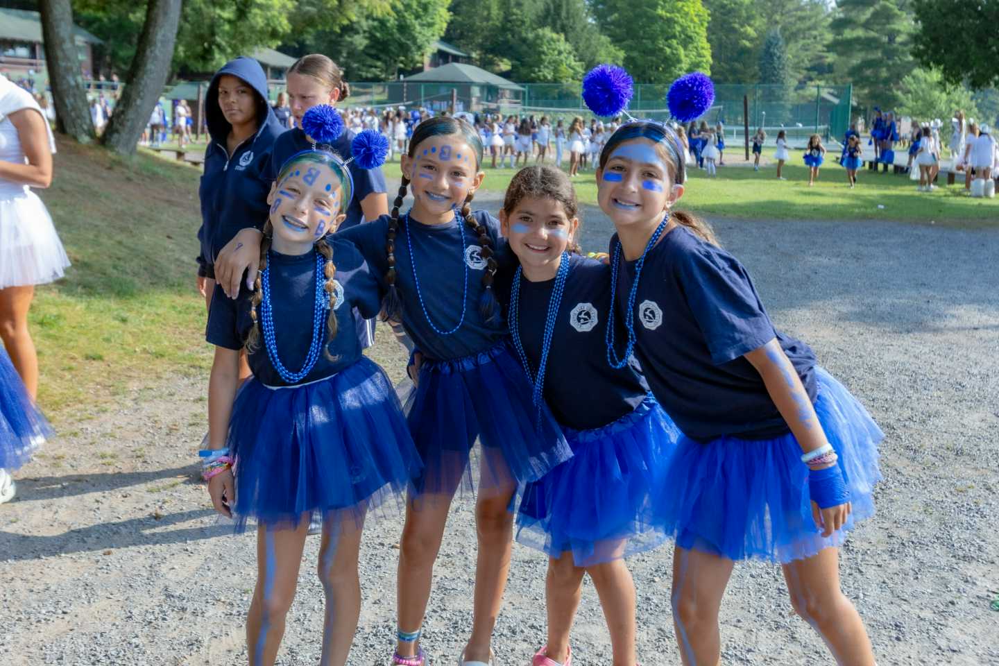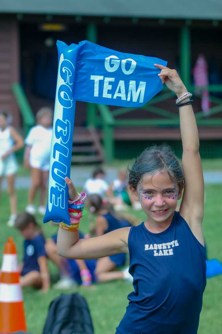 Today marked the exciting start of Team Week at Camp Raquette! Tutus and face paint galore, the girls arrived at the flagpole in their finest team attire, bursting with energy and enthusiasm. That vibrant spirit carried over to the dining room and continued throughout the day’s events.