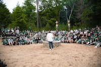 As the sun set over the beautiful lake with the pine trees behind, we gathered together for the opening campfire, a cherished Raquette Lake tradition. Everyone loved listening to stories and wisdom about the history and virtures of Boys Camp.