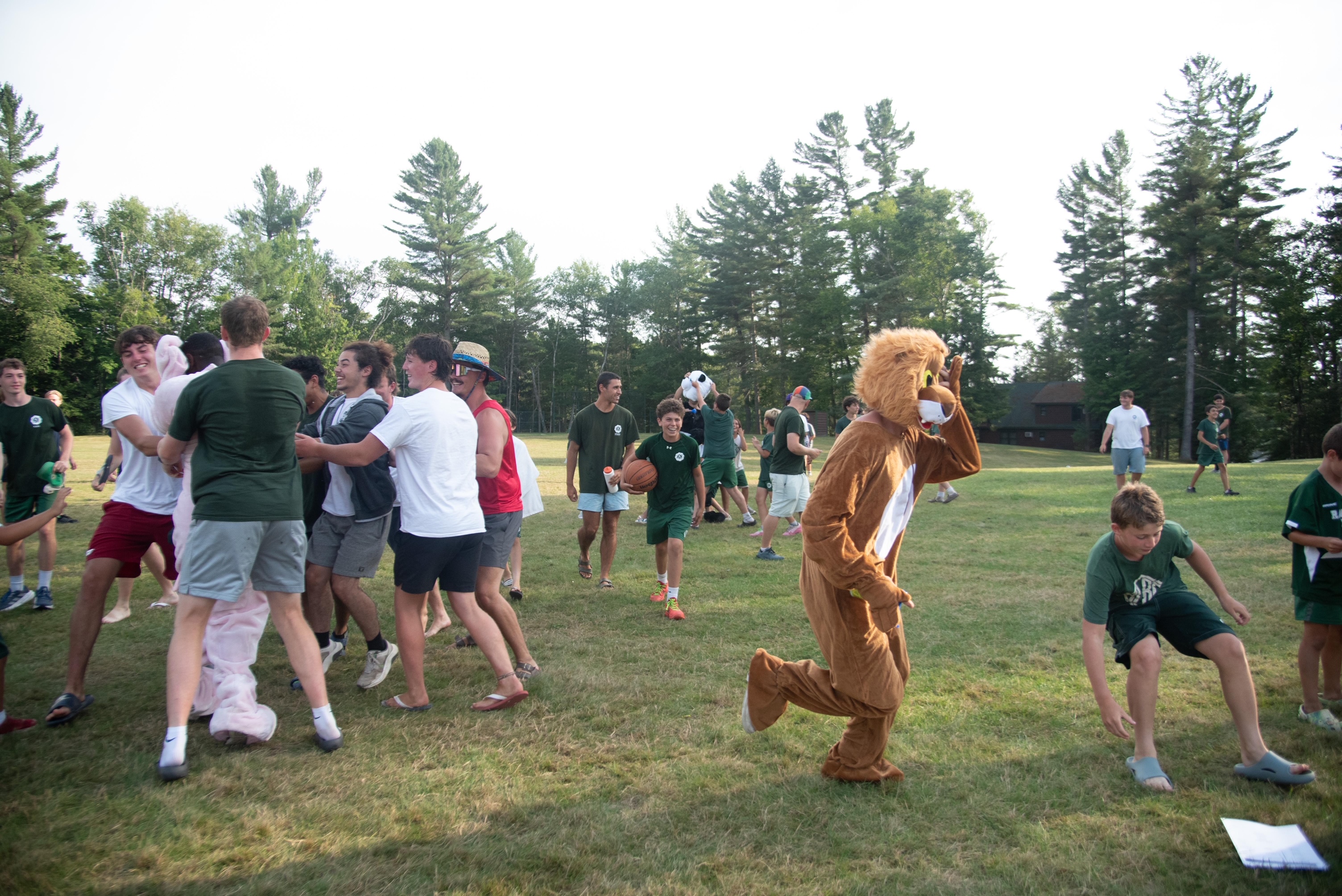 Two minutes later, the magic hit.The plane swooped back for the official drop of… green and white stuffies. The crowd erupted as air horns blasted, Generals charged into the field dressed in costume, and the WAR sign lit up for all to see. Splits and bears rained down, campers screaming and laughing, knowing the moment they’d been waiting for all summer had finally arrived, COLOR WAR!