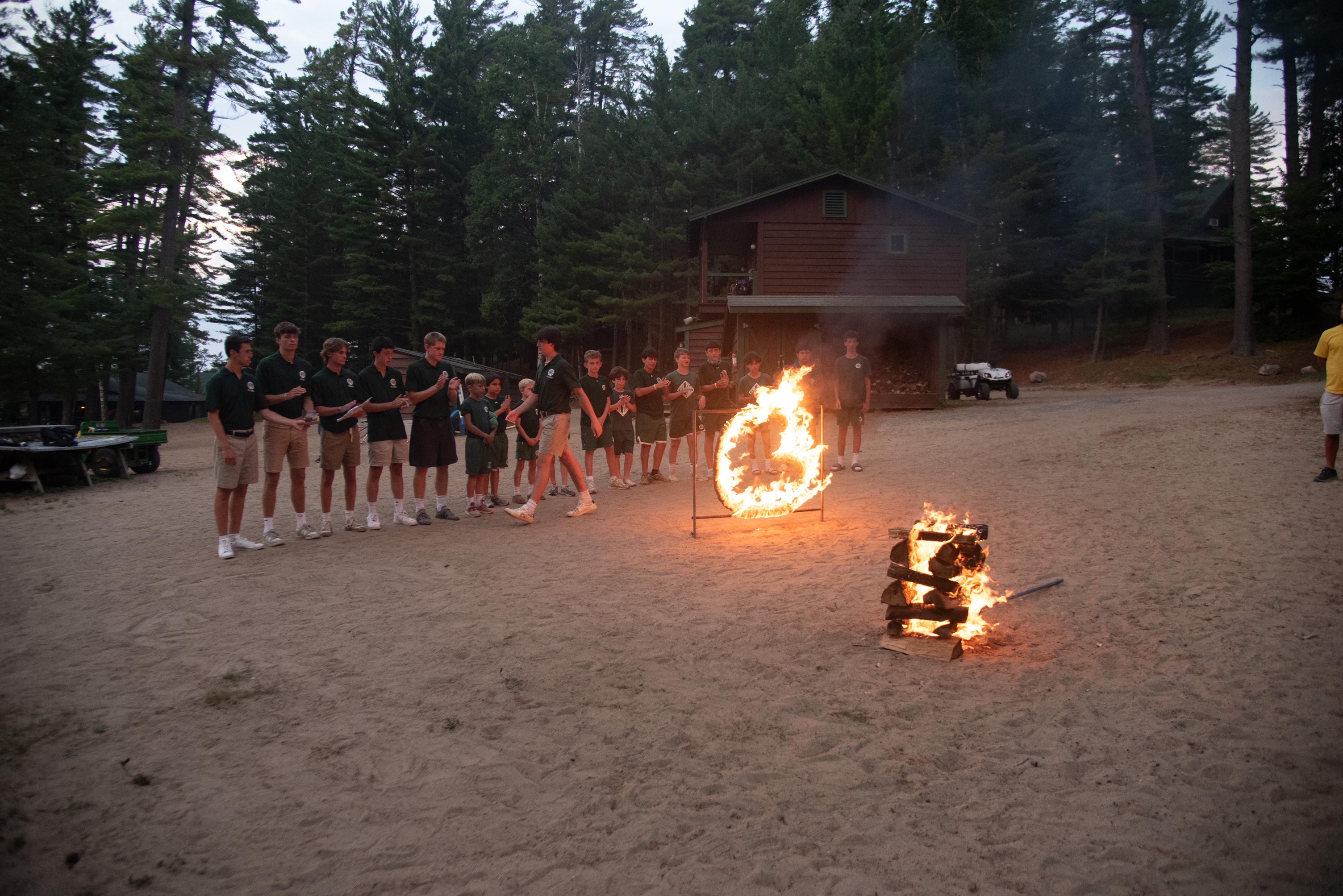 White was sent to Tent, Green to Eddie’s Campfire.After a tense coin toss to determine the first advantage, campers hustled back to bunks to change for the Opening Campfire — the official start of the week long friendly rivalry, teamwork, and camp spirit at its very best. The stage is set. The teams are ready. Let the games begin.